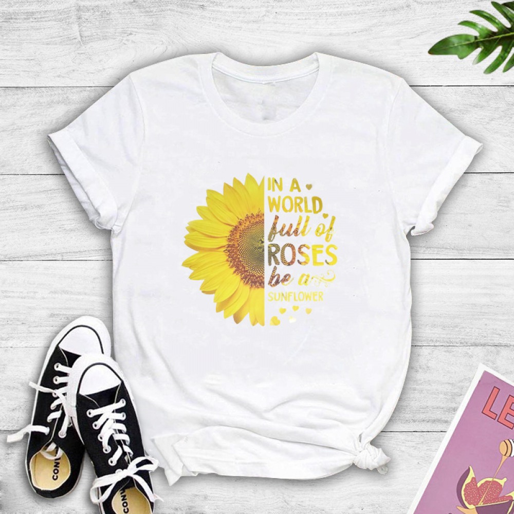 Casual Trendy T-Shirt Women's Plus Size Sun Flower Letter Printing T-Shirt