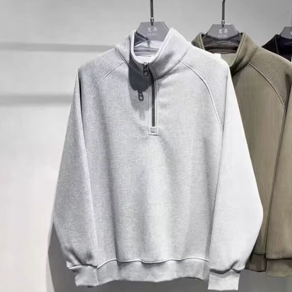 Loose-fitting Long-sleeved Half-zip Casual Sweatshirt for Men Solid Color Simple Stand Collar Top Hoodie