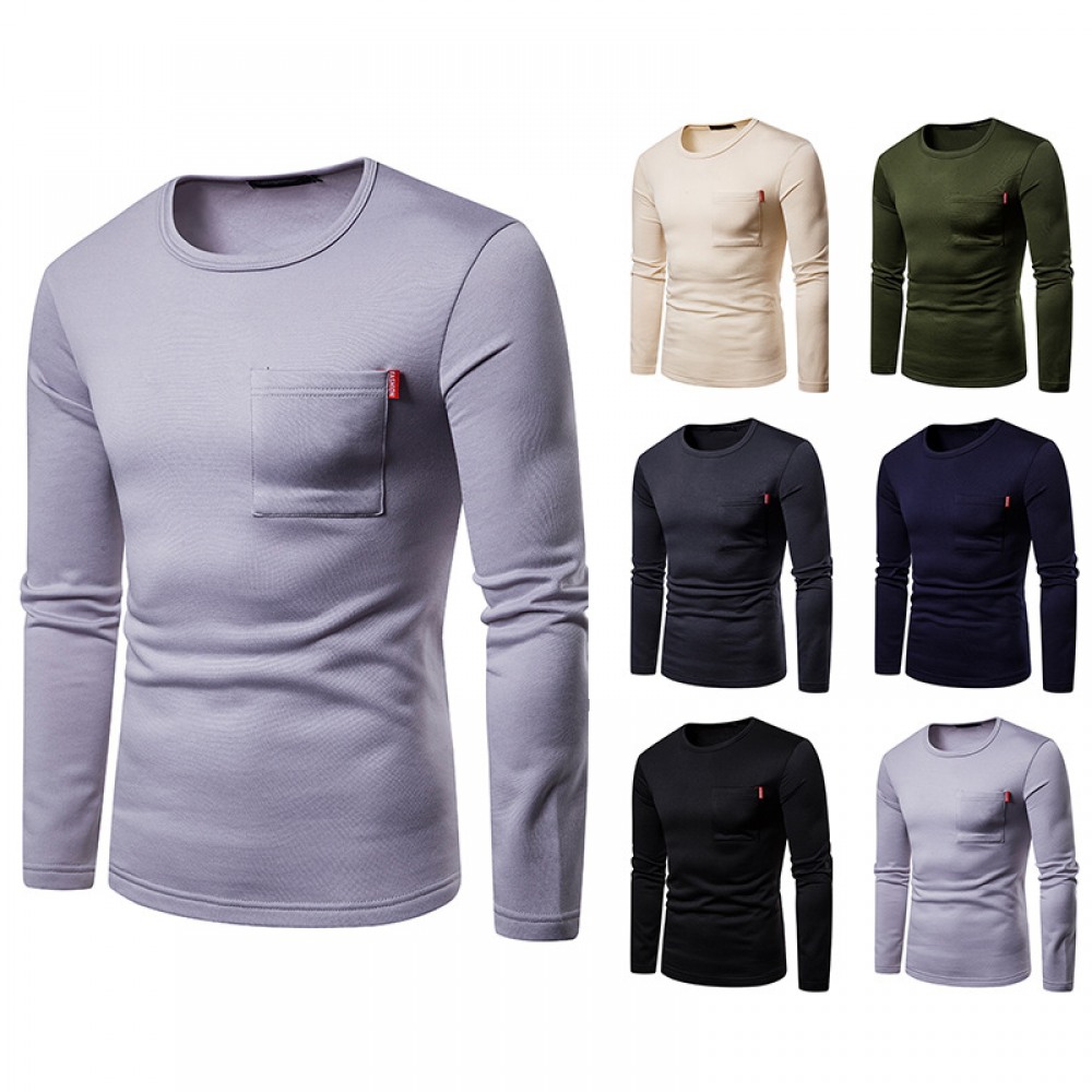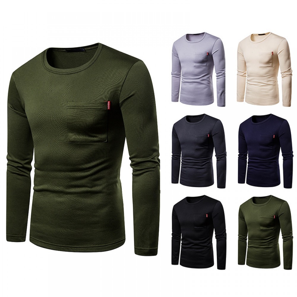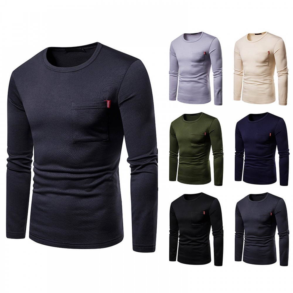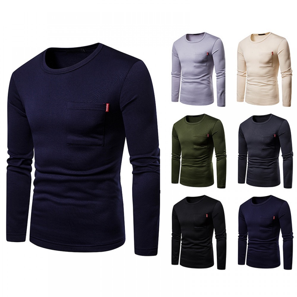 Men's Casual Contrast Color Slim Long-Sleeved T-Shirt Bottoming Shirt