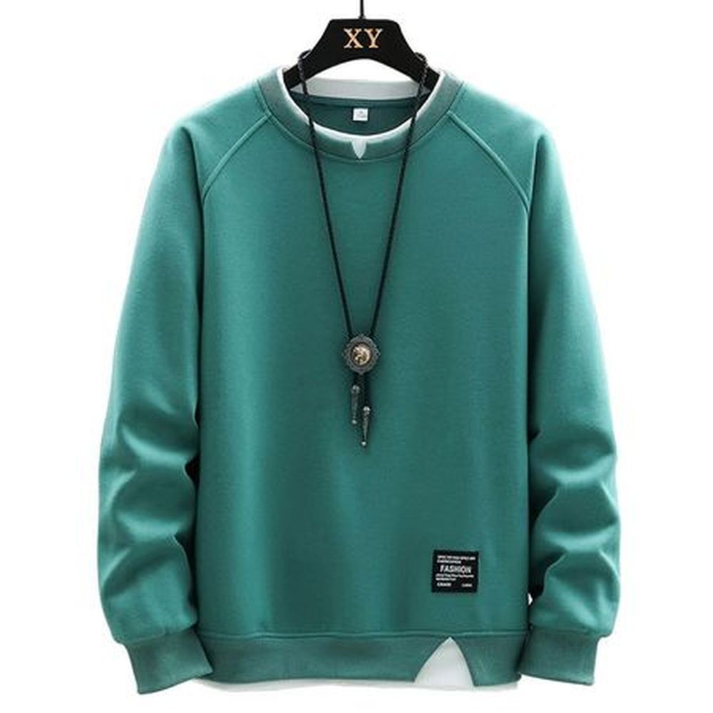 Men's Solid Color Pullover Round Neck Plus Velvet Sweater Warm Long Sleeves