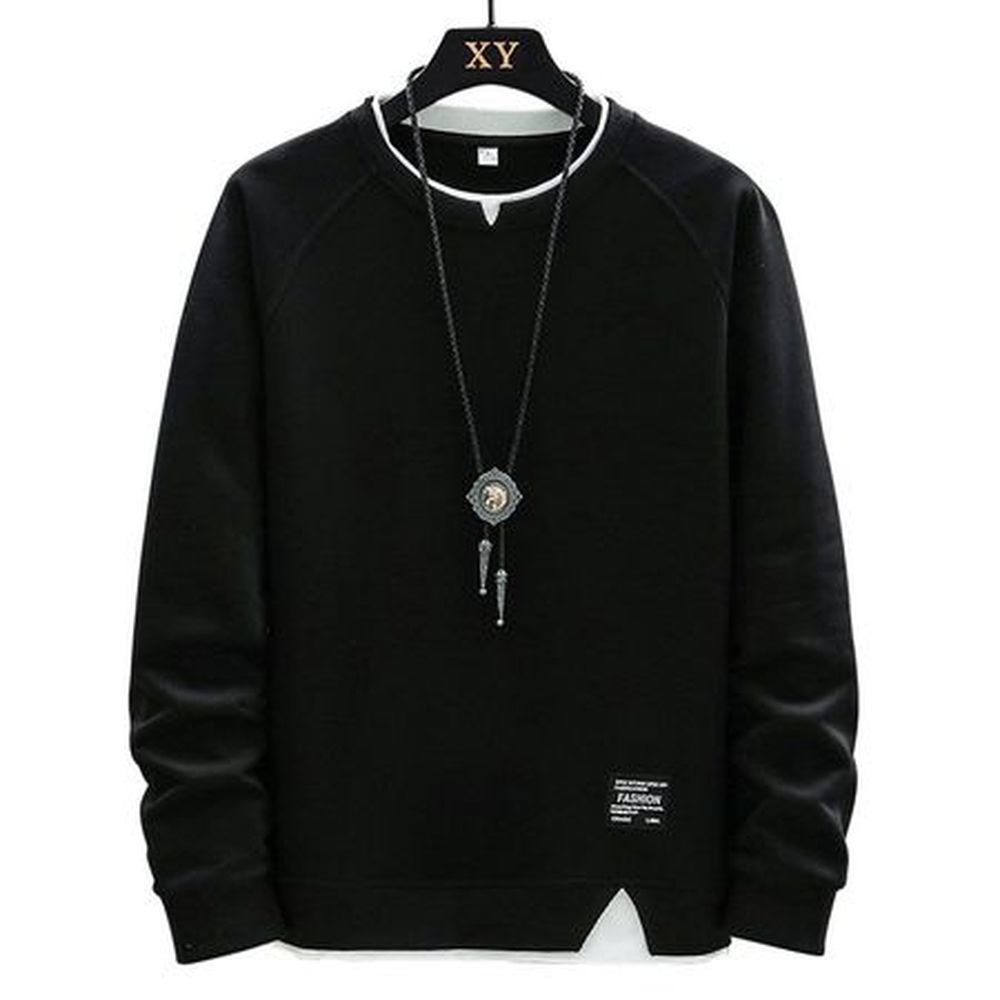 Spliced ??Crew Neck Hoodie Long Sleeve T-Shirt Top for Men
