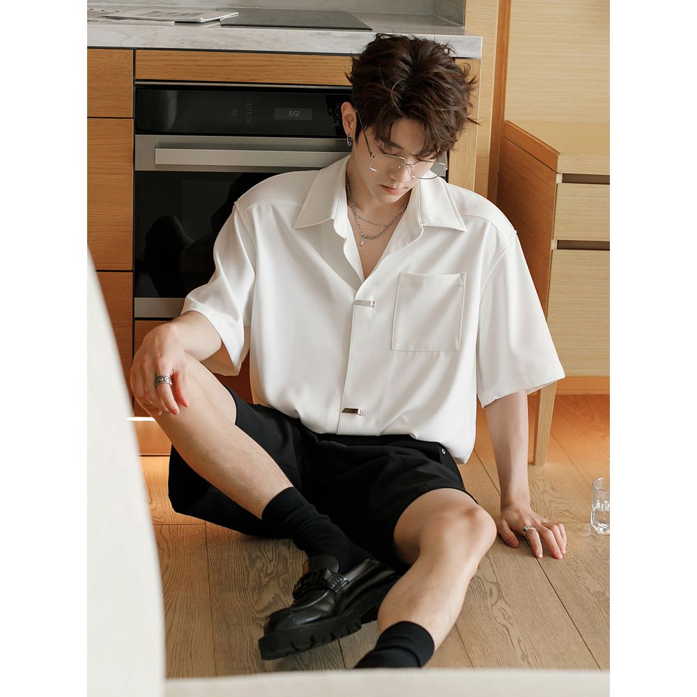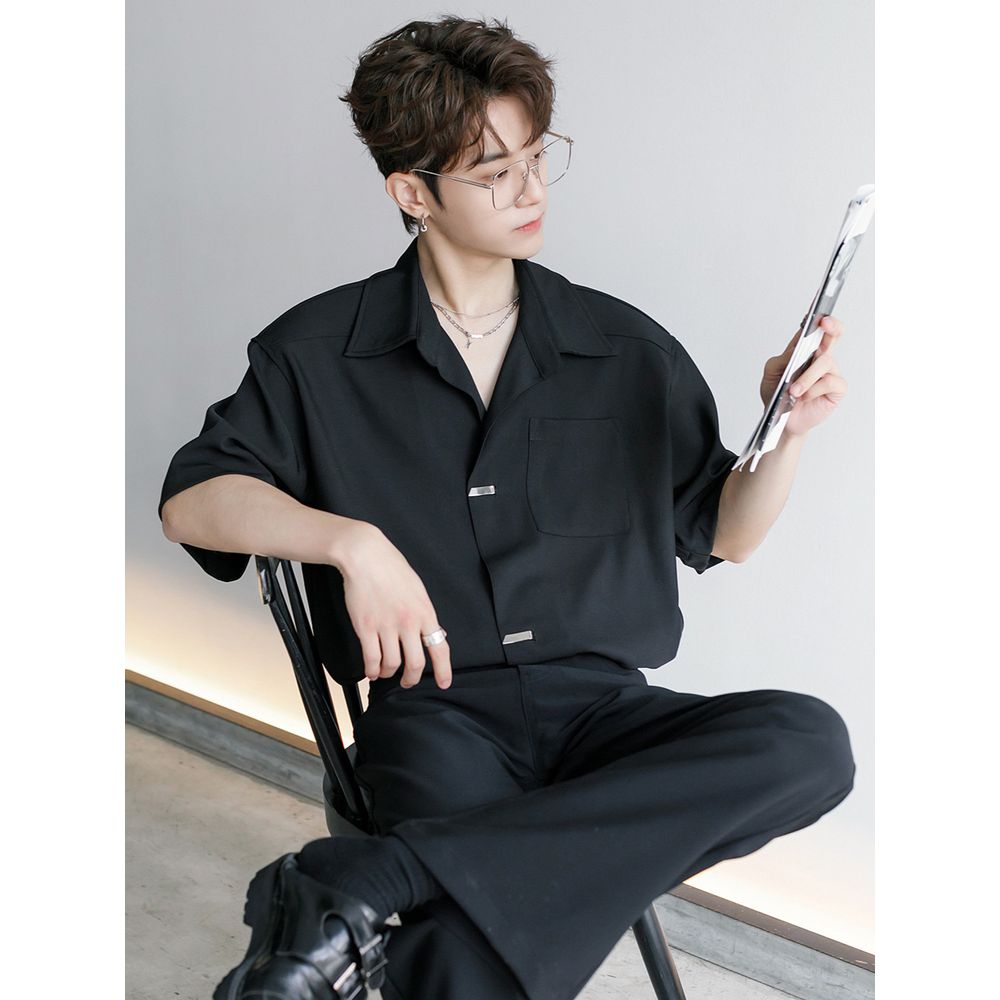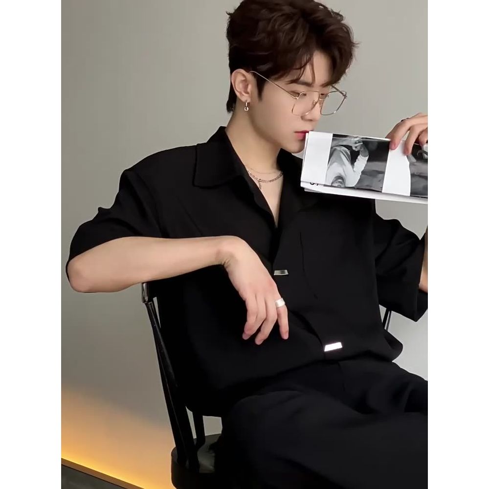 Ice Silk Shirt Short Sleeve Men's Summer Thin Solid Color Casual Jacket