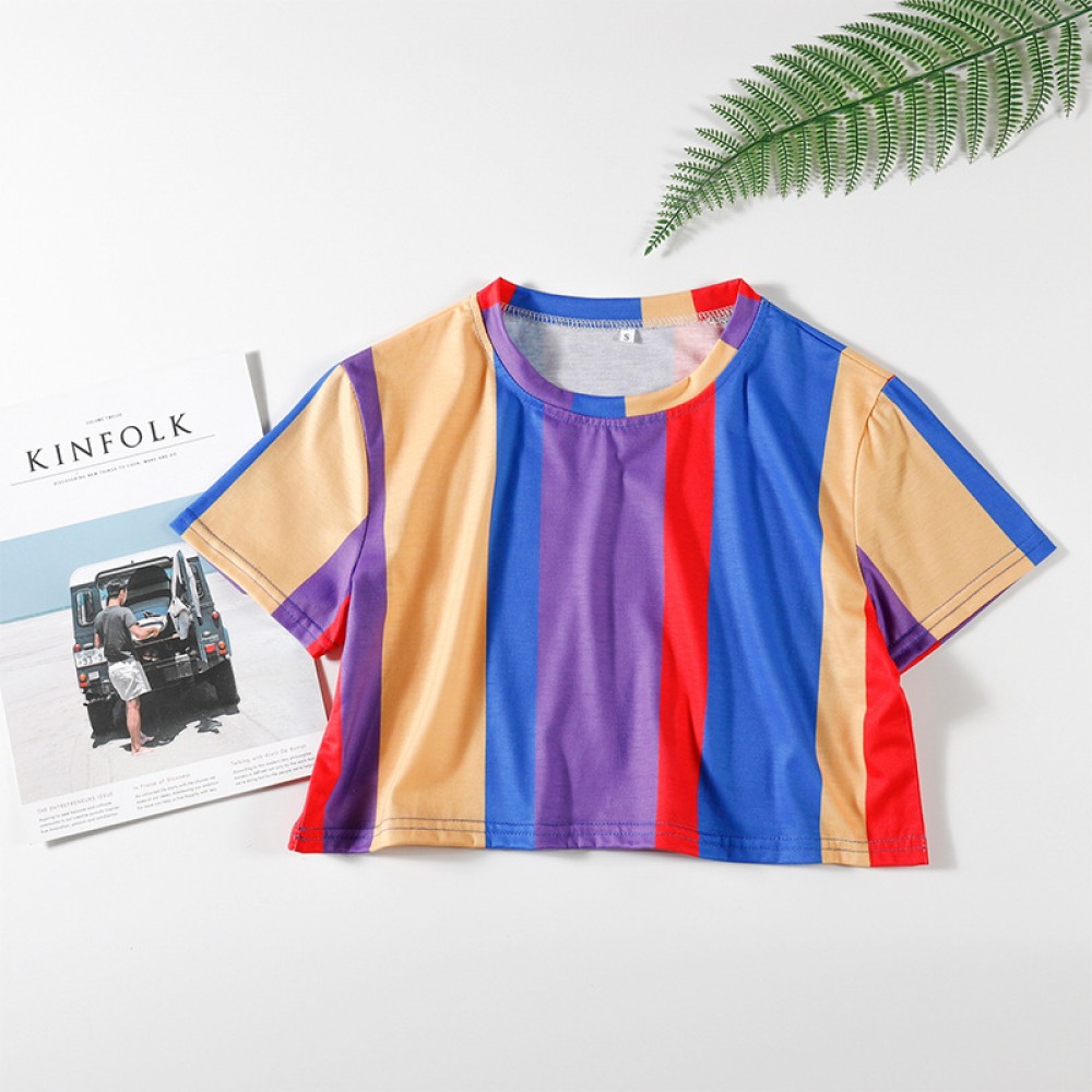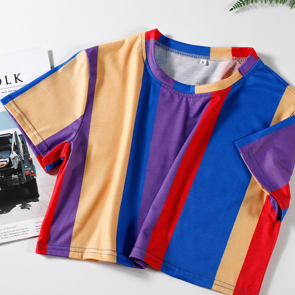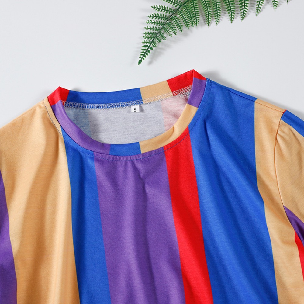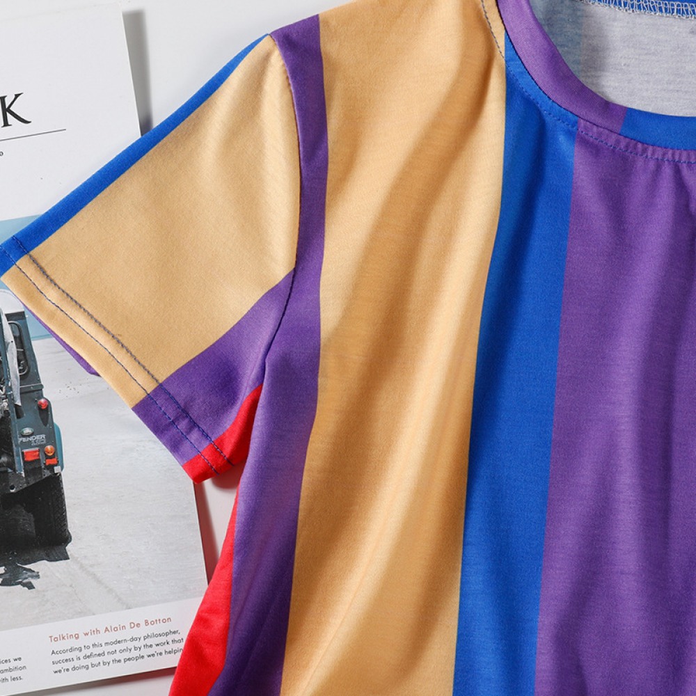 Color Bar Contrast Short Loose T-Shirt