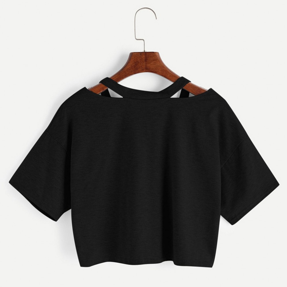 White Round Neck Straight Shoulder Short Sleeve T-Shirt Women's Top