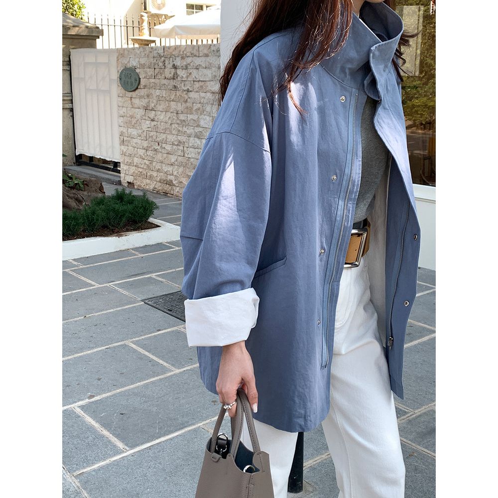High-End Stand Collar Windbreaker Jacket Women's Loose Long-Sleeved Cardigan Top