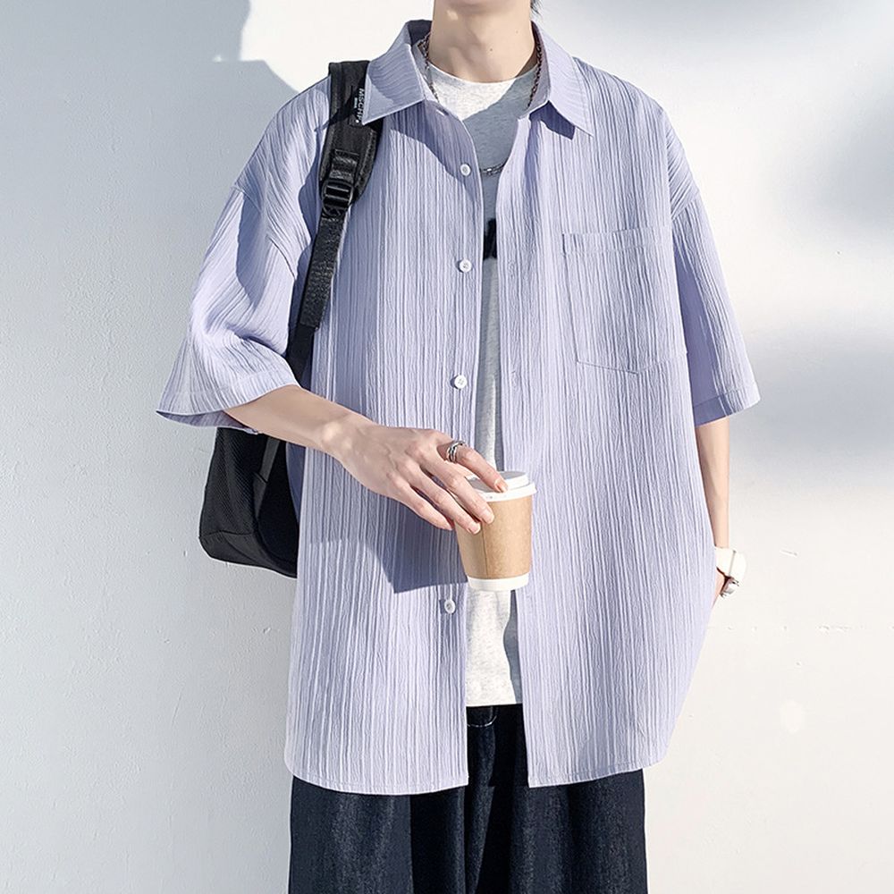 Ice Silk Shirt Short Sleeve Men's Summer Thin Solid Color Casual Jacket
