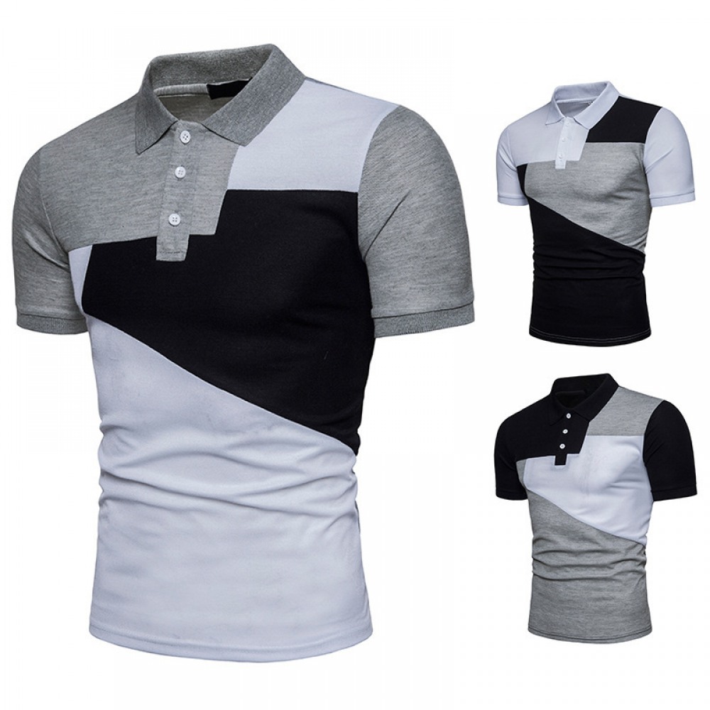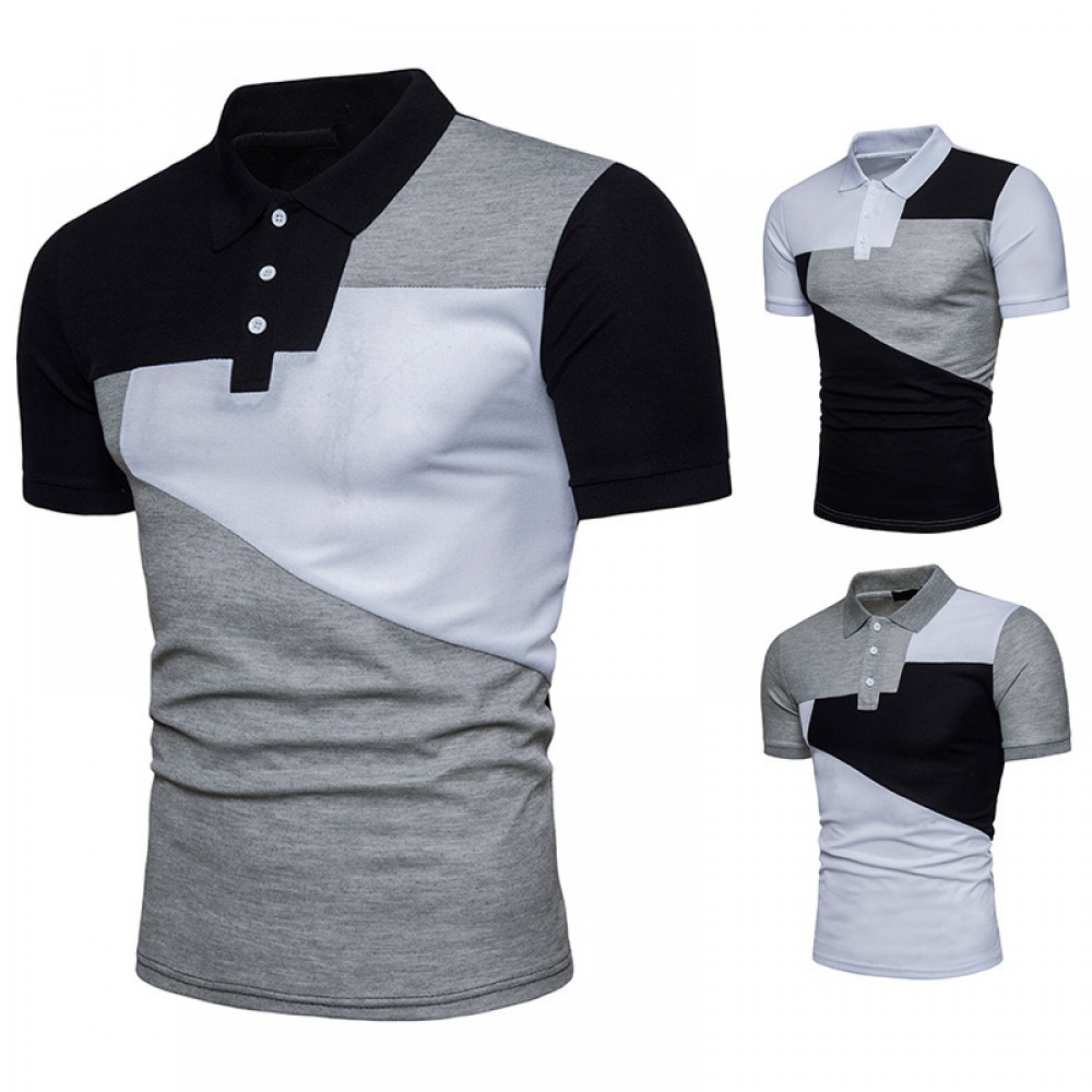 Summer Men's Personality Hit Color Lapel Short-Sleeved T-Shirt
