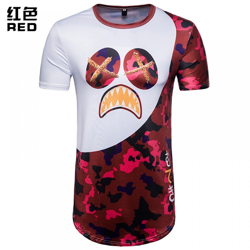 New Men's Hip-Hop Long Camouflage Print Short Sleeve T-Shirt