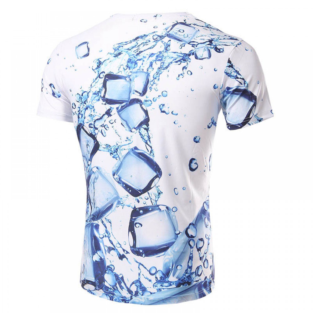 New Style Men's Personality Water Drop Ice Cube Three-Dimensional 3D Printing Men's Short Sleeve T-Shirt