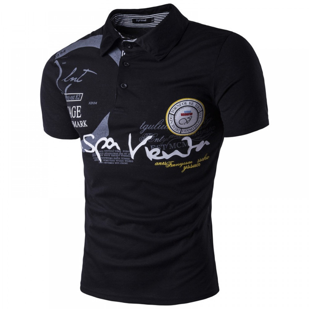 New Summer Men's Lapel T-Shirt Polo Shirt Mens Short-Sleeved Printing Thin Style Running Style