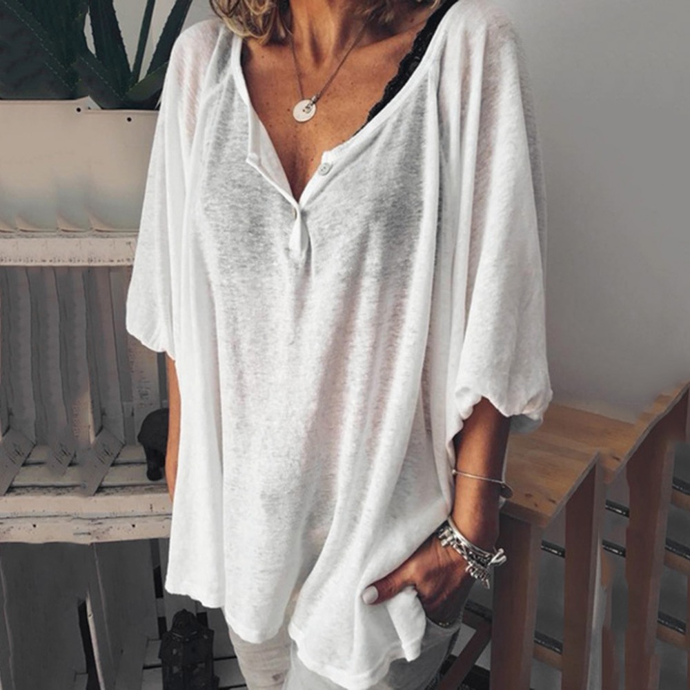 Summer Hot Style Pullover Neckline Two Button T-Shirt